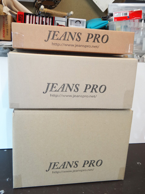 ご返送時の梱包はジーンズを1本ずつセロハン袋に入れます。本数に対応した大きさの新品のダンボール箱にてご返送いたします。