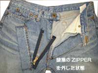 現状のボタンフライのジーンズをジッパーフライのジーンズに作り替えます。