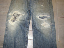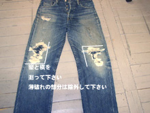 1本のジーンズに数カ所ダメージが在る場合に”タタキ”を施すダメージ部分に