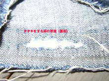 - 補修糸は、綿糸100%を使用しております。補修直後が縫い糸が若干めだちますが、お洗濯を繰り返す間に糸も色落ちしてきます。違和感は無くなります。