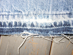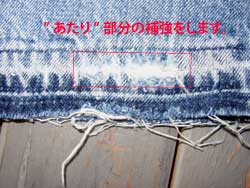 裾ステッチより上部分のデニムが欠損状態の場合は、欠損部分の補修料金が必要になります。大きさにより料金が異なります。欠損部分の補修はステッチより上部分の大きさより料金がことなります。画像を参考に寸法を測ってください。